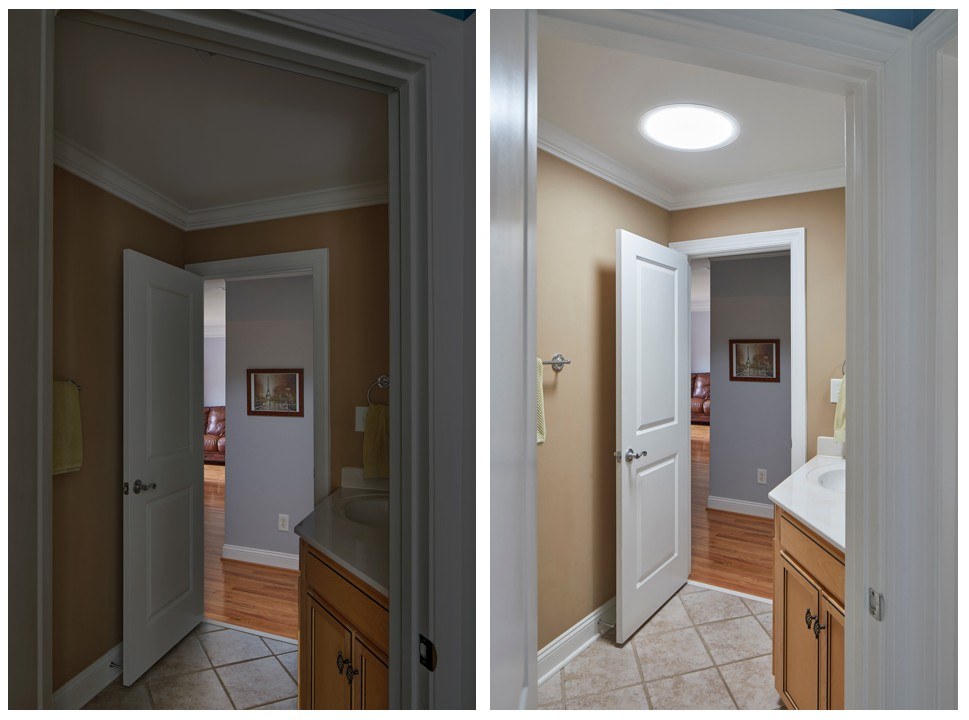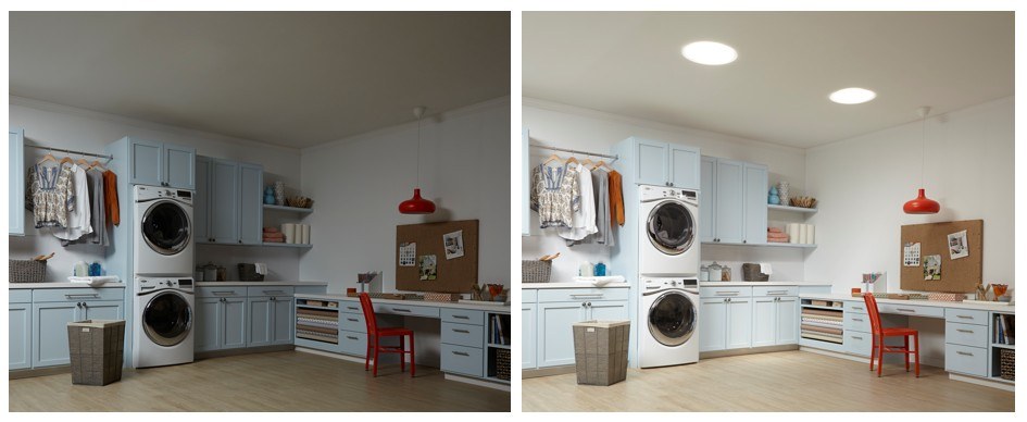 Daylight from skylights naturalizes the look and feeling of the home, adding a calming effect and connecting it to the outdoors.